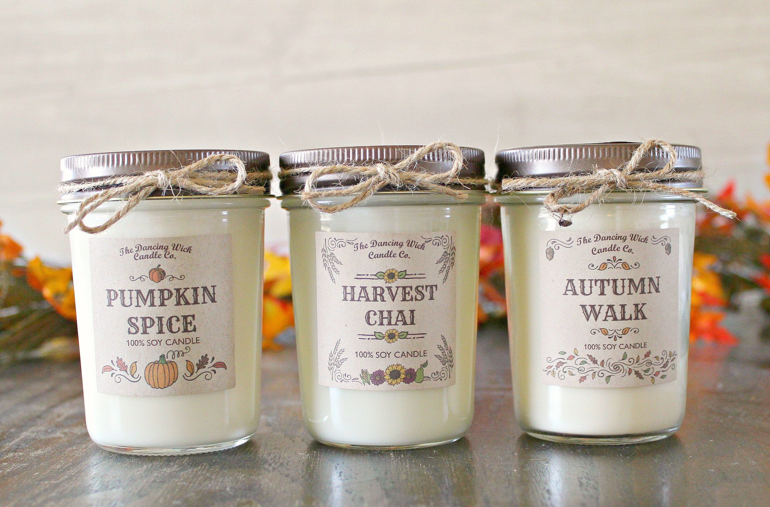This set of 3 fall candles are my best selling fall scents all packaged up in one beautiful gift set. These make the perfect gift or make for the perfect fall decor for your home. This set comes with or without the gable box for easy gift giving. If purchasing as a gift, please leave your personalized note in the **notes section to seller** at checkout. If you would like a different color of ribbon please notate that as well.