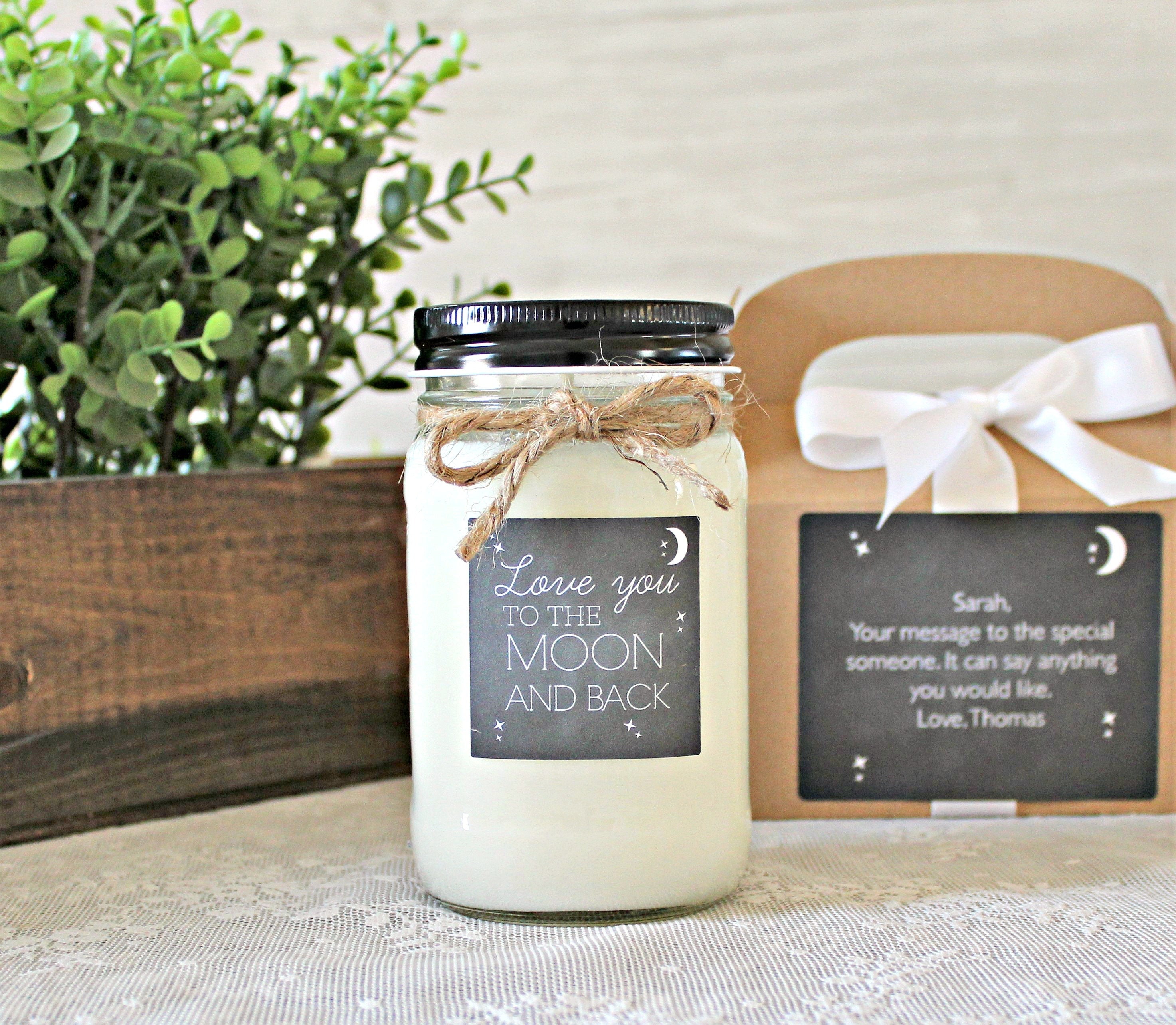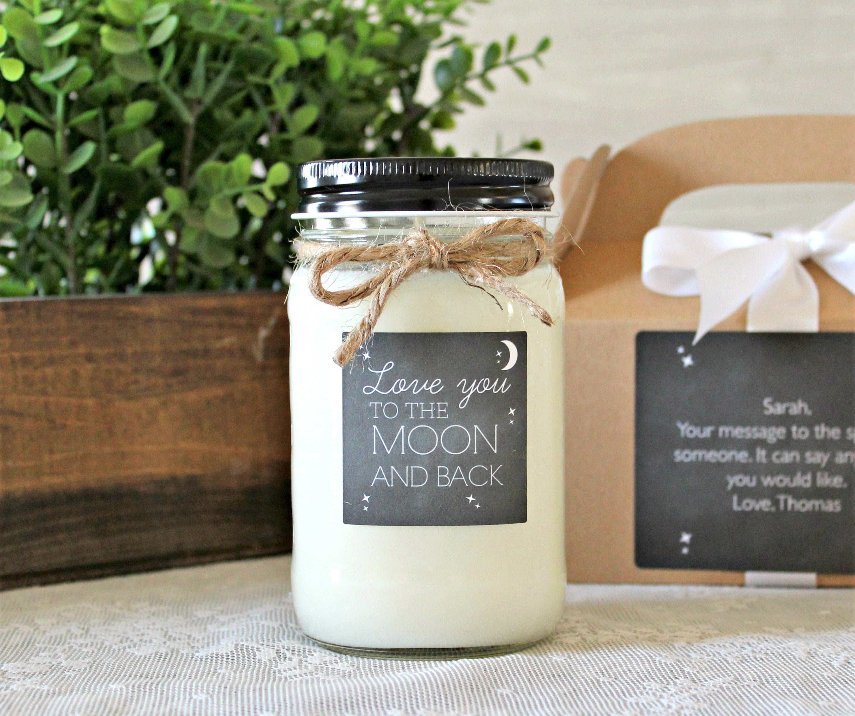 Looking for the perfect way to tell that someone special that you Love them To the Moon and Back. This candle definitely fits the bill!! If ordering the gable box, you're more than welcome to put a special message on the box label. Please leave your message in the notes section at checkout. If you don't leave a message in the notes section, your box label will read Love you to the Moon and Back like the candle.
